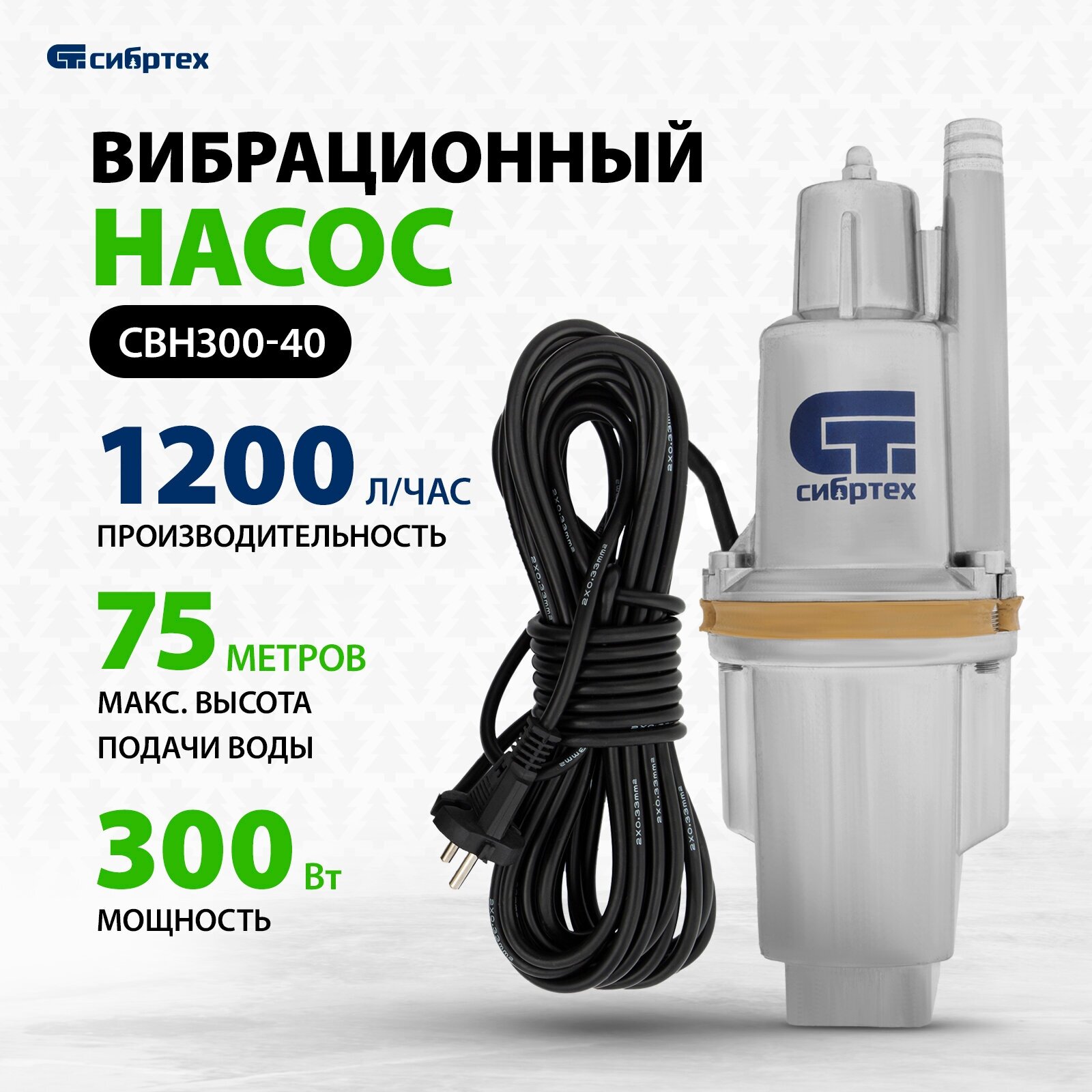 10 цен на Вибрационный насос СВН300-40, верхний забор, 300 Вт, напор 75 м, 1200 л/ч, кабель 40 м Сибртех