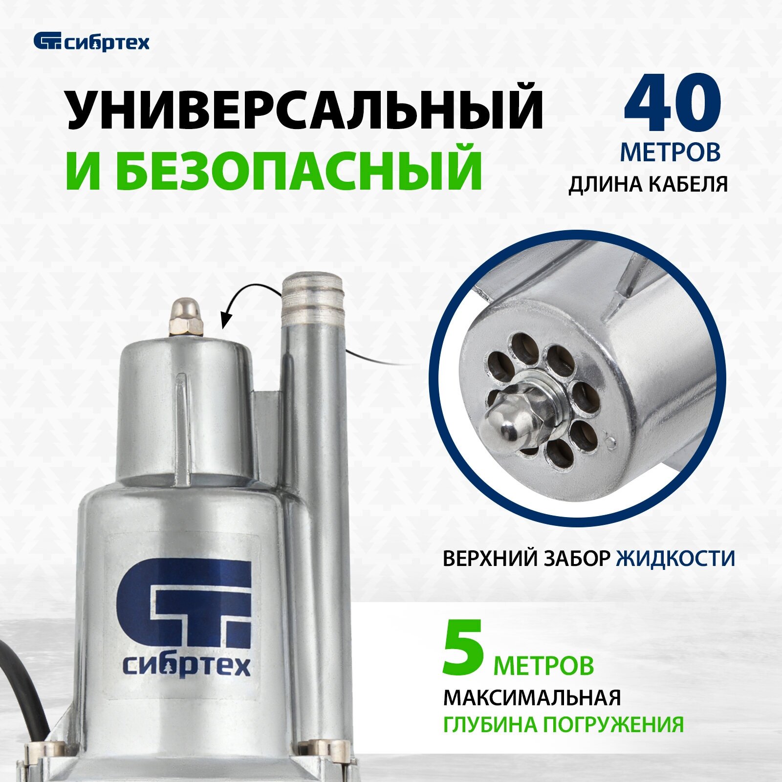 Вибрационный насос СВН300-40, верхний забор, 300 Вт, напор 75 м, 1200 л/ч, кабель 40 м// Сибртех 2 536 ₽