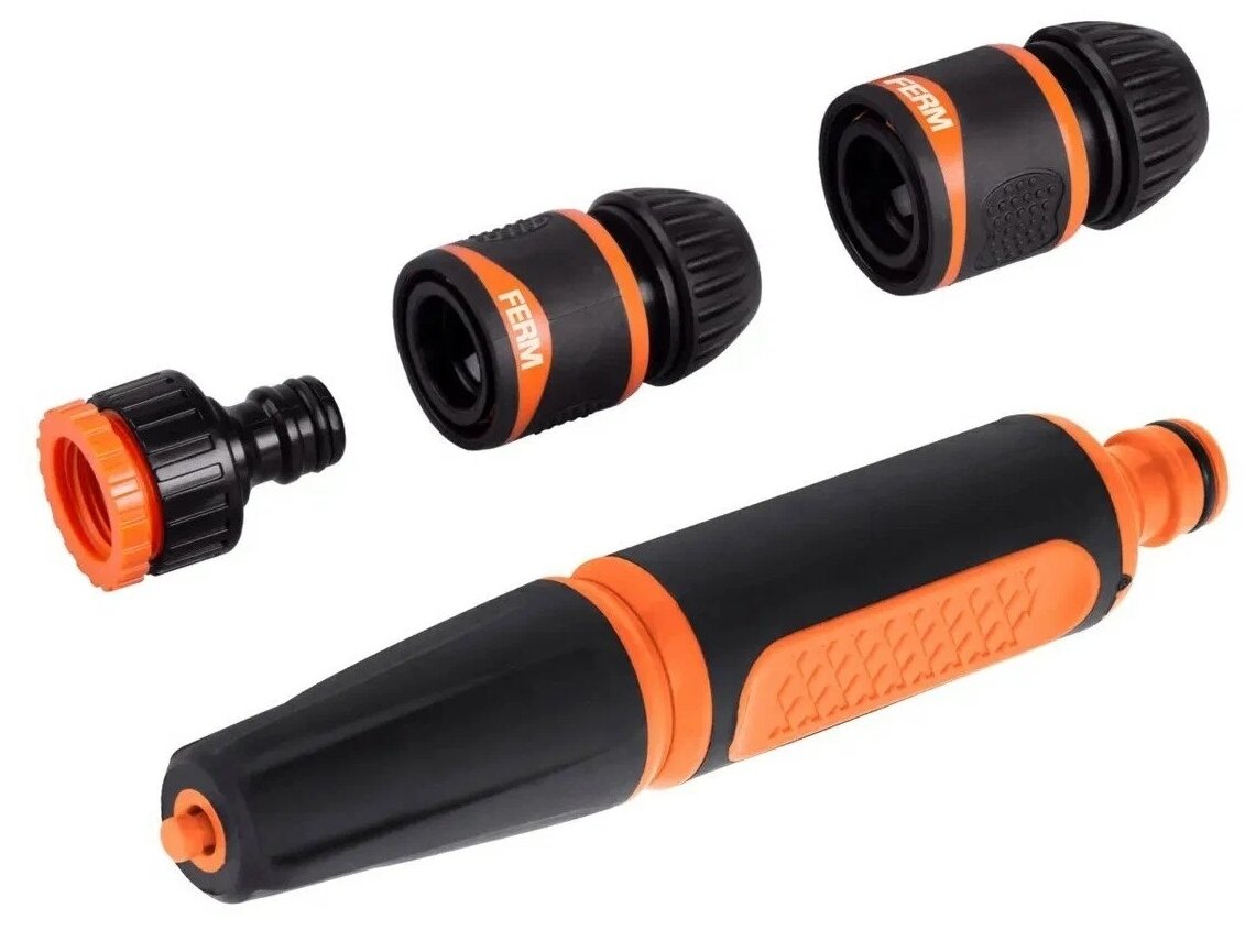 | Дополнительная информация | Набор FERM GHA1001 состоит из садового шланга длиной 20 м, наконечника, штуцера, двух шланговых соединителей 1/2” (13 мм) с гидрозатвором и без него. Обеспечивает быстрое подключение к шлангу 13 мм (1/2″) или к водопроводному крану с диаметром 1/2” и 3/4”. |