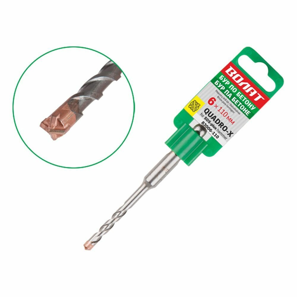 10 цен на 6х50х110 мм бур (сверло) SDS-plus QUADRO-X волат (бур по бетону, крестовая пластина) (83006-110)