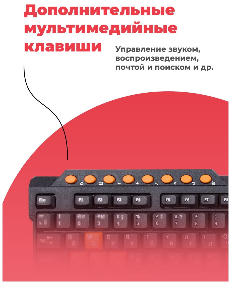 Клавиатура RKB-151, игровая, проводная, мембранная, 104+16 клавиш, USB, чёрная 688 ₽