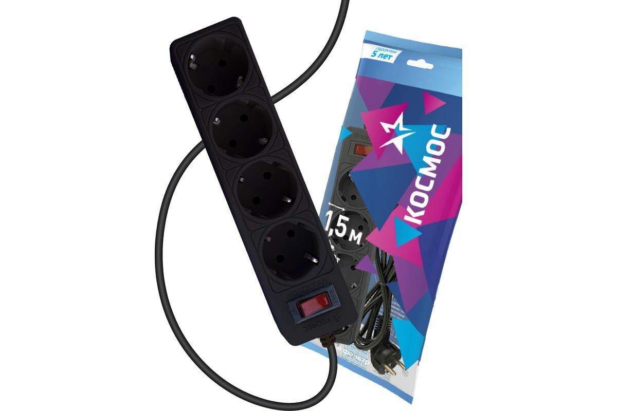 Сетевой фильтр космос 1,5м, 4 гнезда, пвс 3x0,75мм2, черный FKsm1.5m-4g(B) информация:
