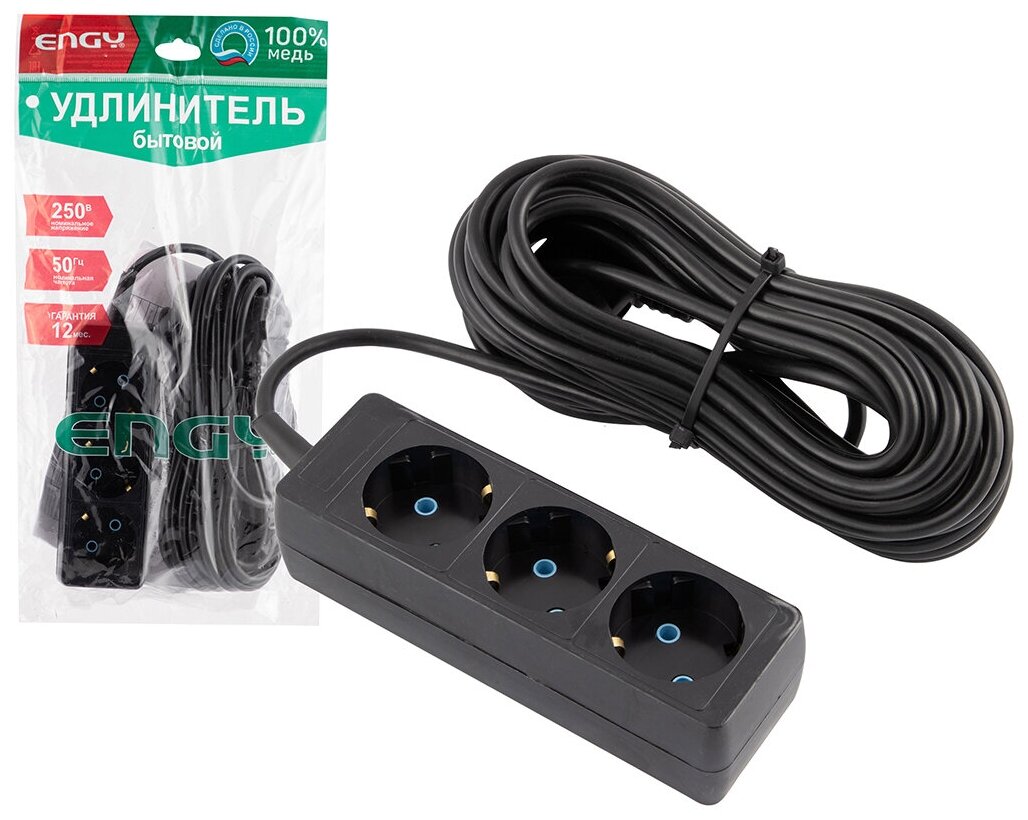 10 цен на Удлинитель Engy Гранд 10м/3роз. с зазем. черн.