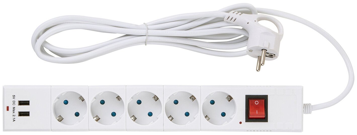 Сетевой фильтр düwi 5 гнезд с-з, 3м, 2USB