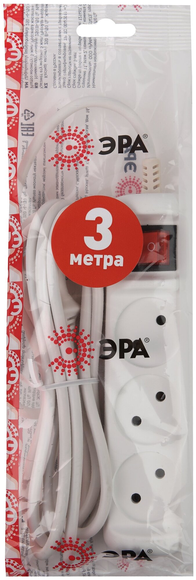 Удлинитель Эра UX-3es-3m 3 розетки 3м с заземлением и выключателем 10а
