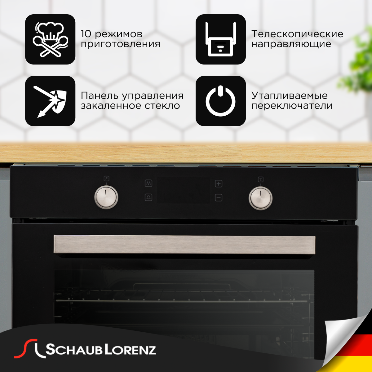Электрический духовой шкаф встраиваемый Schaub Lorenz SLB EY6943, 78л,черное стекло, гриль, конвекция, пицца, размораживание
