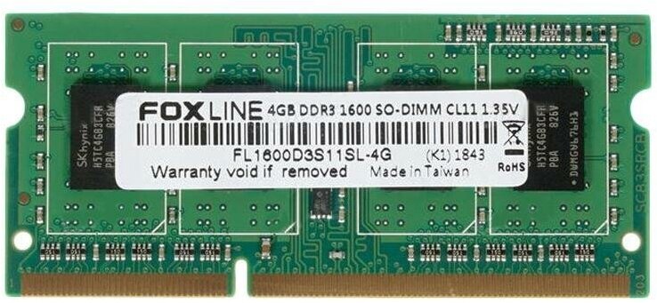 Оперативная память Foxline 4 ГБ DDR3L 1600 МГц SODIMM CL11 FL1600D3S11SL-4G