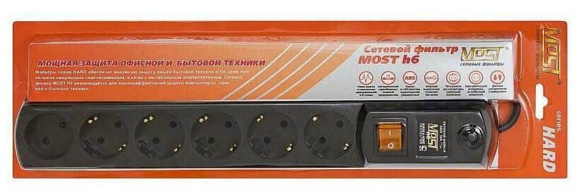 Сетевой фильтр Most H6, 5м, черный [моsт н6-ч 5м]