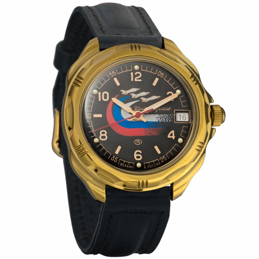 Мужские наручные часы Восток Командирские 53925Б-classic, натуральная кожа, черный