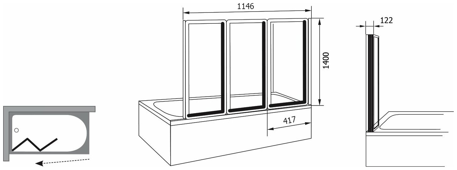 Шторка для ванны складывающаяся трехэлементная Ravak VS3 115 сатин+транспарент 795S0U00Z1 43 883 ₽