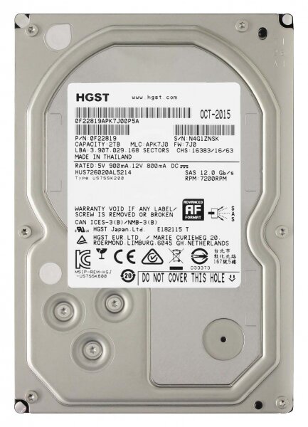 Жесткий диск HGST HUS726020AL5214 2Tb 7200 SAS 3,5" HDD информация: