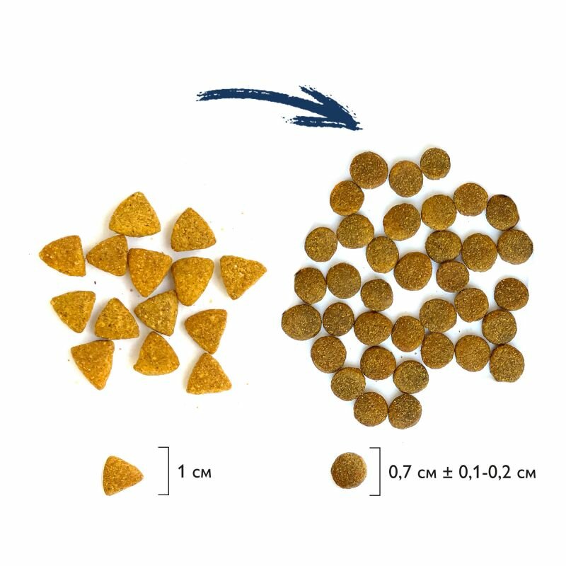 | Состав | дегидрированное мясо 37% (утка, курица), кукуруза, глютен кукурузный, рис, жир куриный, гидролизованная и дегидратированная печень 3%, свекольная пульпа, дрожжи (источник маннанолигосахаридов), витаминно-минеральный комплекс, таурин, топинамбур (источник инулина – фрукто-олигосахаридов), клюква, DL-Метионин, антиокислитель, экстракт юкки Шидигера, экстракт розмарина |