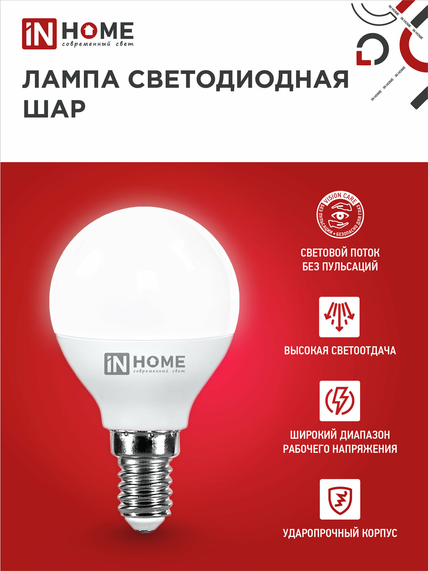 Лампа светодиодная IN HOME LED-ШАР-VC (4690612020594), E14, P45, 11 Вт, 4000 К 263 ₽
