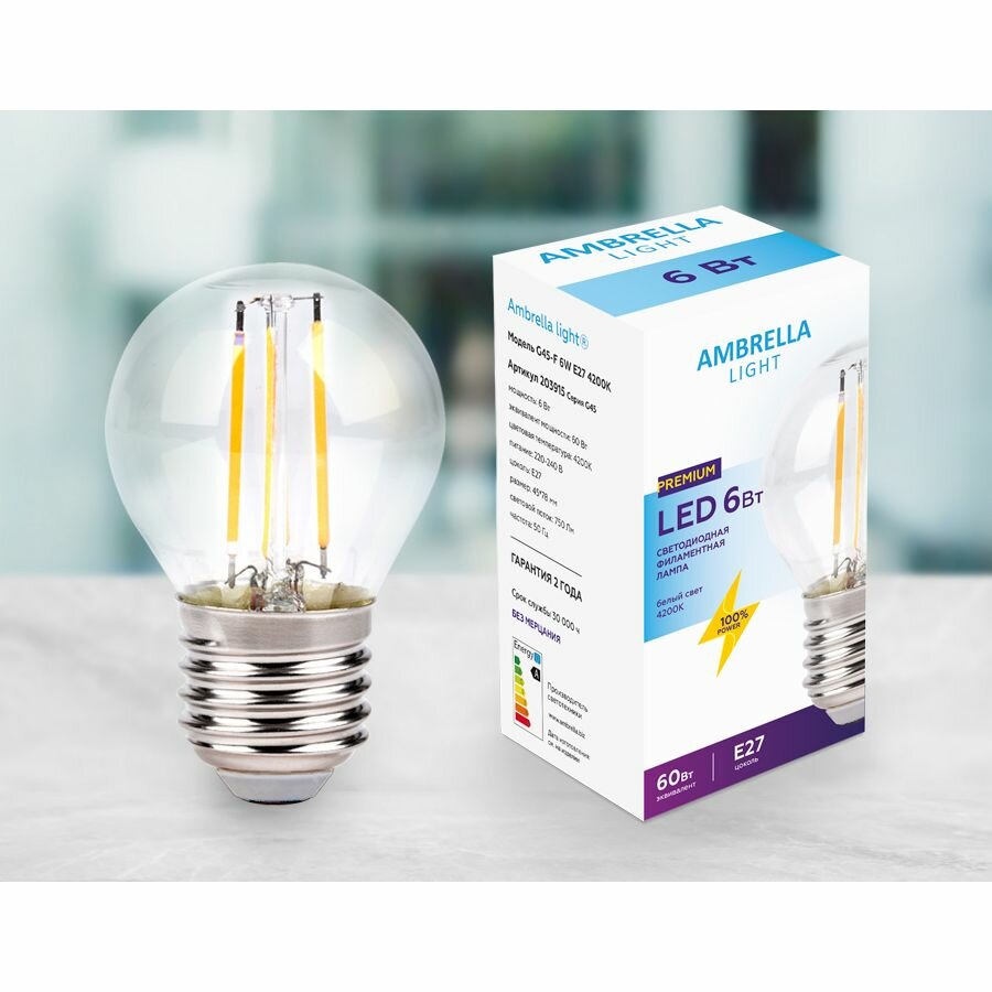 Отзывы на Лампа светодиодная филаментная Ambrella light E27 6W 4200K прозрачная 203915