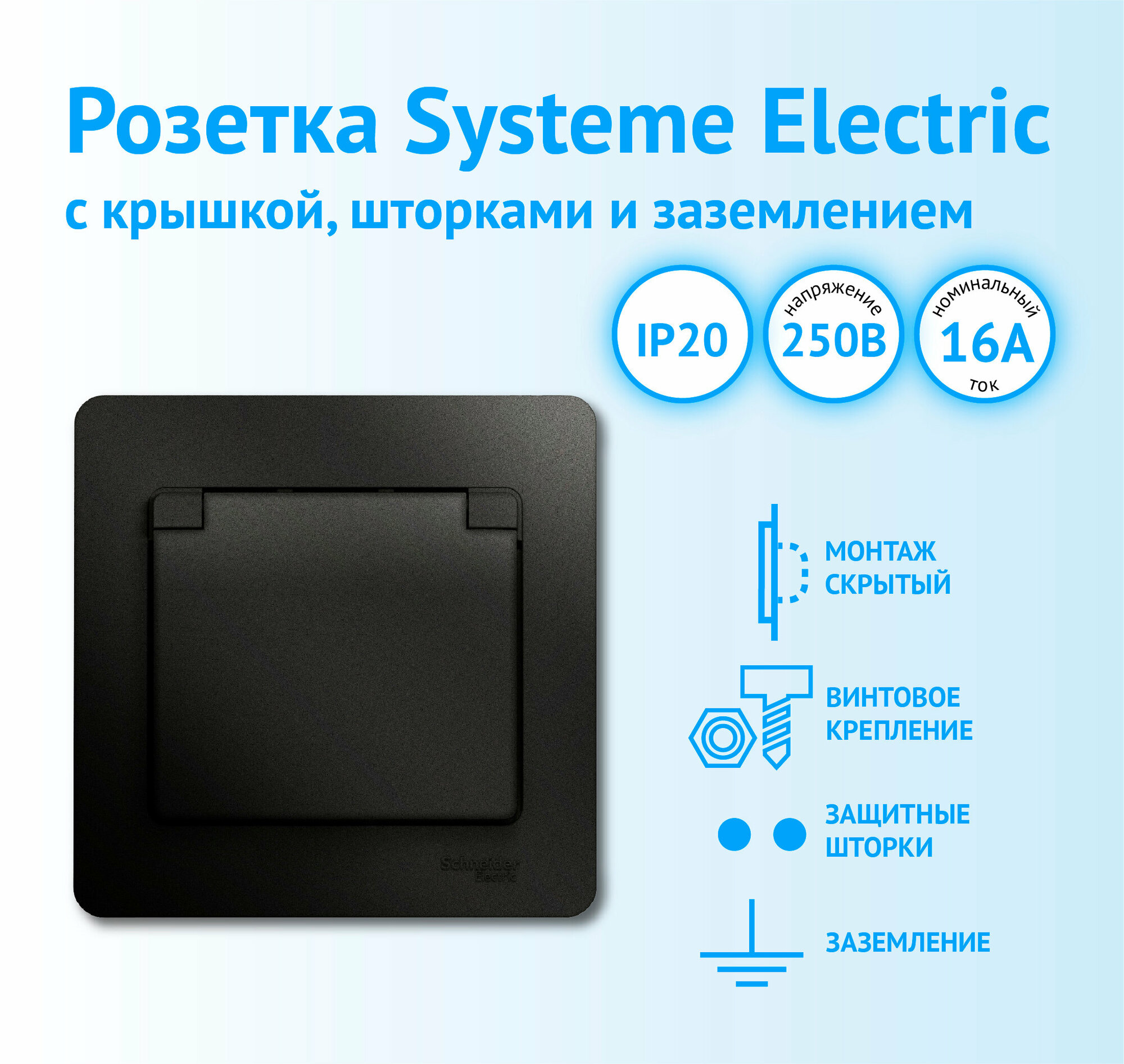 1шт. - GLOSSA Розетка с заземлением со шторками с крышкой IP20 антрацит в сборе / Systeme Electric; арт. GSL000746; оригинал / - комплект 1шт 696 ₽