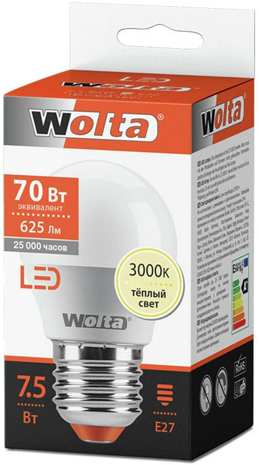 10 цен на Светодиодная лампа Wolta STANDART E27 7,5 Вт 625 лм 3000 К шар