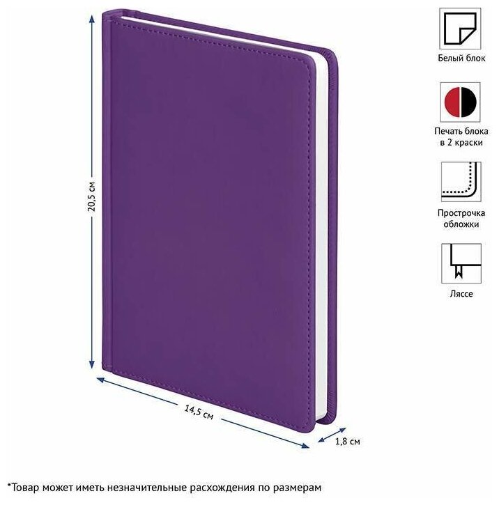 En5_12707 Ежедневник недатир. A5, 136л., кожзам, OfficeSpace "Winner", фиолетовый информация: