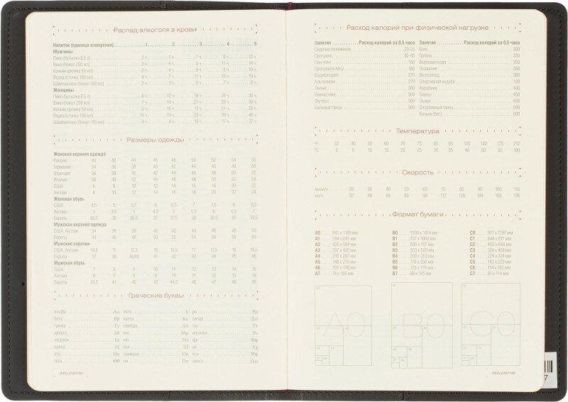 | Особенности | карман для визиток / ляссе / поля / прошивка по периметру обложки / справочная информация / цветной обрез |