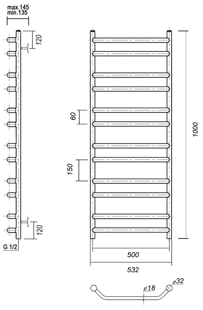 Полотенцесушитель водяной Domoterm Лаура П12 500*1000 хром 279 Вт информация: