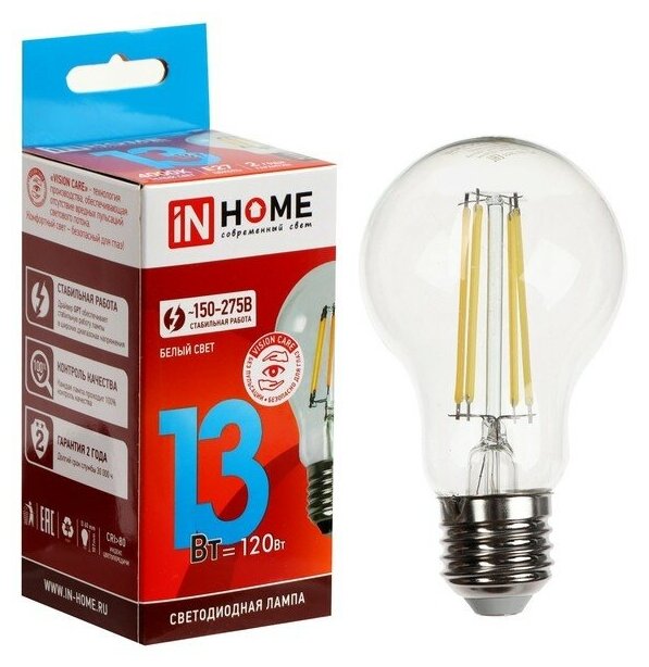 Отзывы на Лампа светодиодная LED-A60-deco 13Вт 230В Е27 4000К 1170Лм прозрачная IN HOME (арт. 4690612035604)