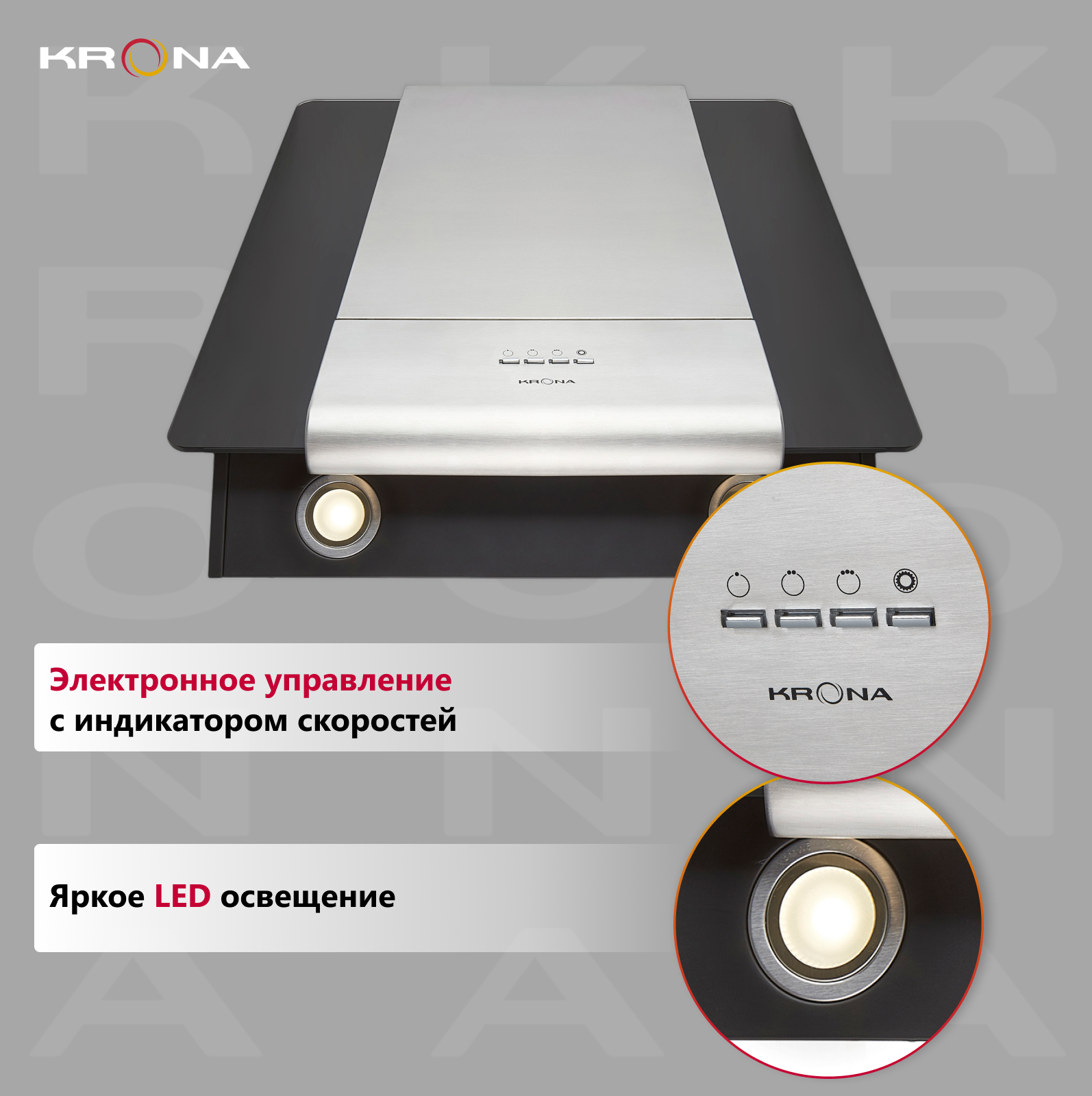 10 цен на Каминная вытяжка Krona TALLI 600 inox/black glass 3P