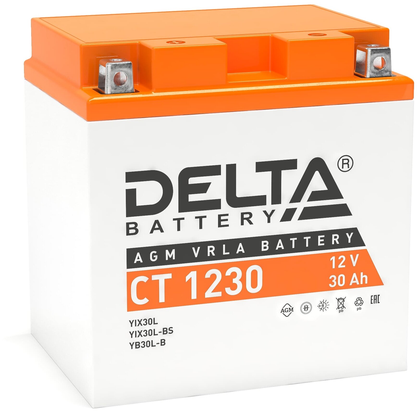 Мото аккумулятор Delta CT 1230 12В 30 Ач (YTX30L; YТX30L-BS; YB30L-B) AGM, аккумулятор для мотоцикла, квадроцикла, скутера, снегохода