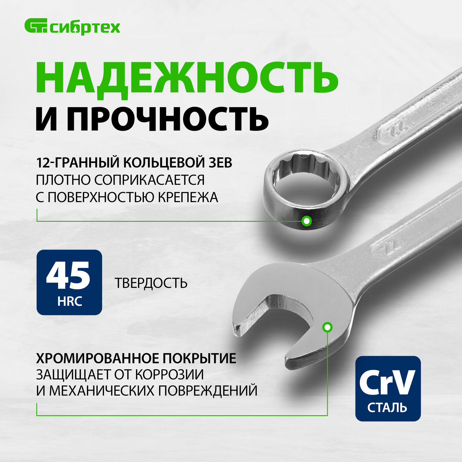 Набор ключей Сибртех комбинированных 6-22 мм, 12 шт, CrV, хромированные, держатель с подвесом 1 982 ₽