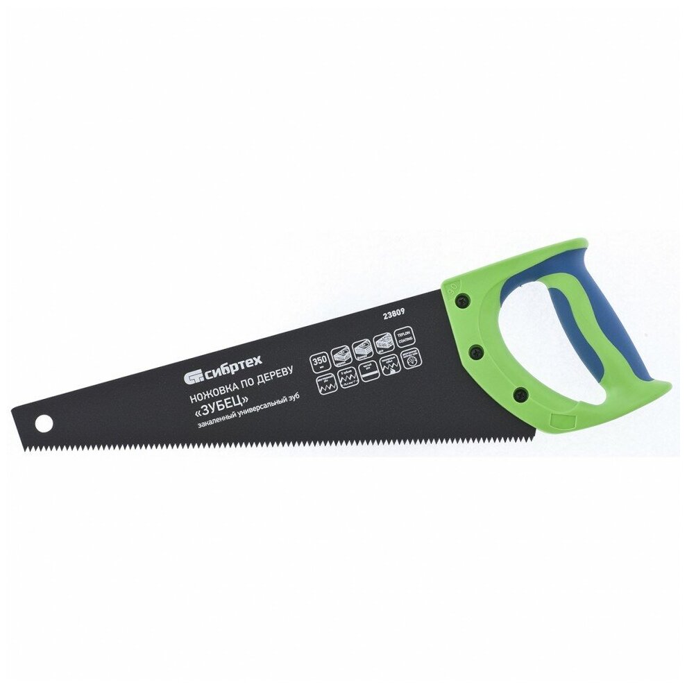 Ножовка по дереву "Зубец", 350 мм, 7-8 TPI, зуб 2D, кал.зуб, защ. покр., 2-х комп. рук-ка, СИБРТЕХ 23809
