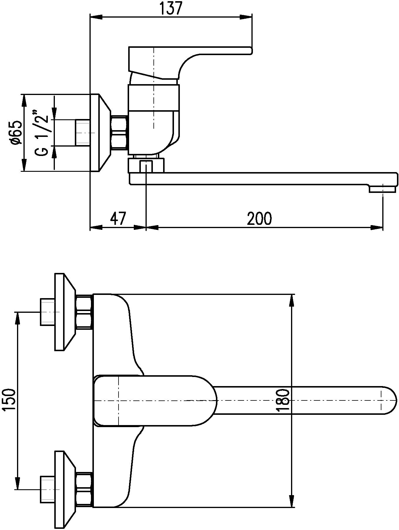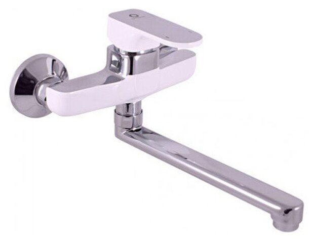 Смеситель на раковину настенный Эверест B46-350 с круглым поворотным изливом, кран-буксы 1/2", хром