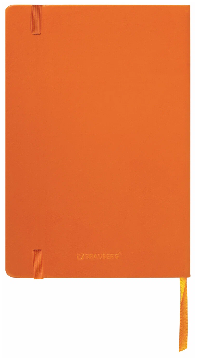 Бизнес-блокнот/записная книжка Brauberg "Metropolis Special" малого формата А5 (148х218 мм) в клетку, 80 листов, под кожу на резинке, оранжевый