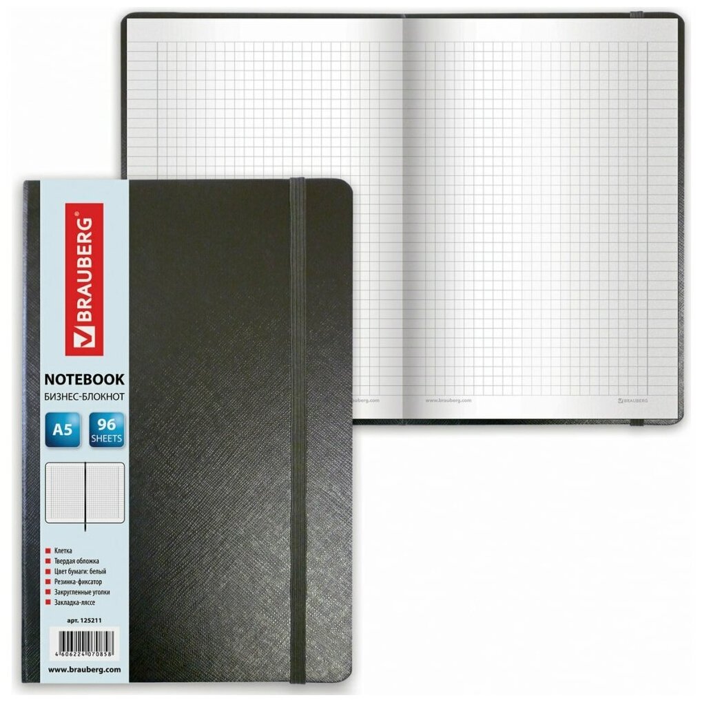 Блокнот BRAUBERG Select А5 148x218 мм, 96 л, зернистый кожзаменитель, резинка, клетка, черный 125211