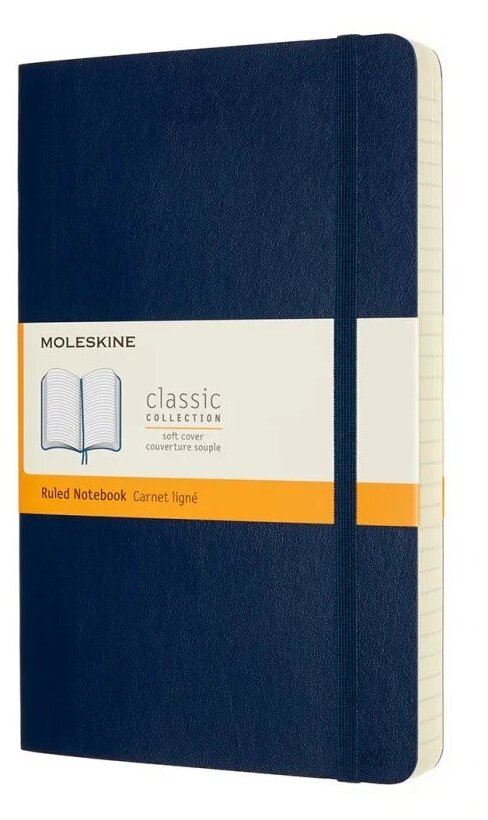 Блокнот Moleskine CLASSIC SOFT QP618B20 Large, 130х210 мм, 192 страницы, нелинованный, мягкая обложка, синий сапфир