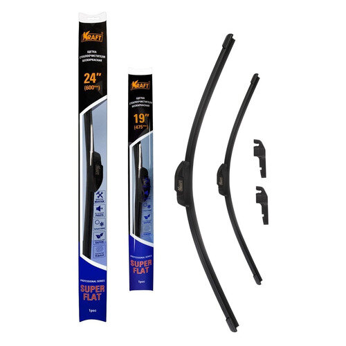 Комплект бескаркасных щеток стеклоочистителя KRAFT 600/475 мм, 10 адаптеров KT 830851
