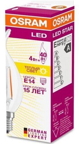 Отзывы на Светодиодная лампа OSRAM LED STAR B, свеча, 4Вт, E14, 470 Лм, 2700 К, теплый белый свет 4058075055452