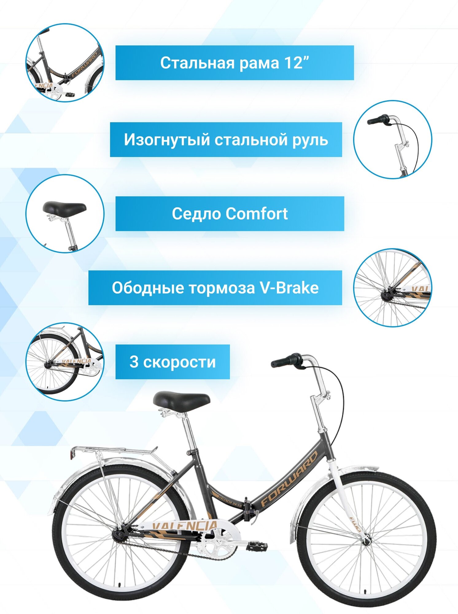 Отзывы на Велосипед складной Forward d 24', Valenсia 24 3.0 20-21 год, рама 16', темно-серый, бежевый, RBKW1YF43002