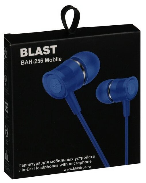 Наушники Blast BAH-256 Mobile, вакуумные, микрофон, управление, 32 Ом, 3.5мм, 1.2м, синие 9275478 информация: