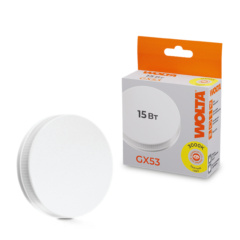 Светодиодная лампа WOLTA 25Y75R15GX53 15Вт 3000K GX53 информация: