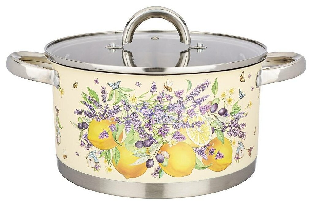 Кастрюля Agness "Прованс Лимоны" со стеклянной крышкой, нержавеющая сталь, 4,6 л, 22*12 см (916-317) информация: