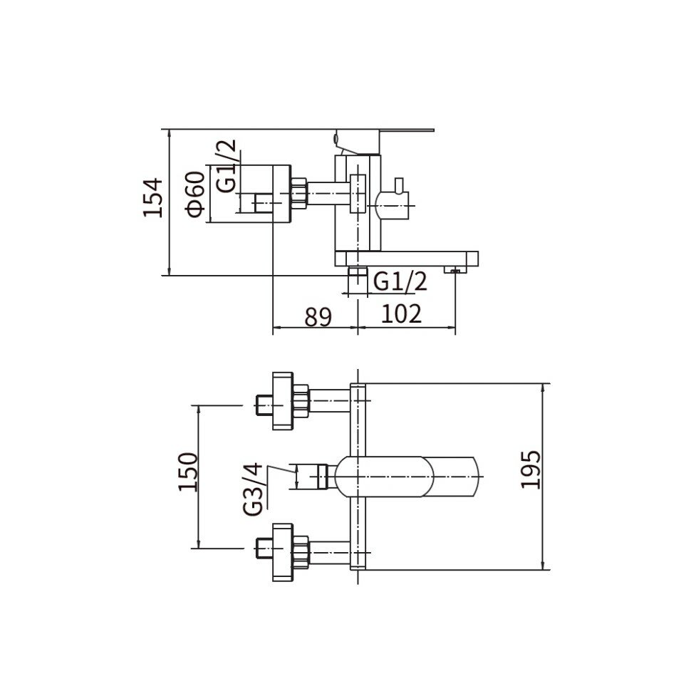Смеситель на раковину настенный Эверест B46-350 с круглым поворотным изливом, кран-буксы 1/2", хром