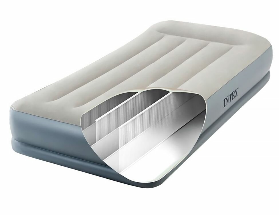 10 цен на Надувная кровать Intex Pillow Rest Mid-Rise Bed (Twin), 99х191х30см, с подголовником и встроенным насосом 220V, 64116-