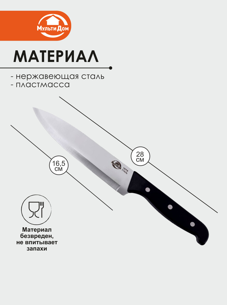 10 цен на Нож кухонный "ШЕФ". Общая длина 28см, длина лезвия 16,5см