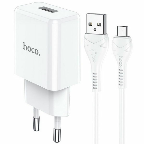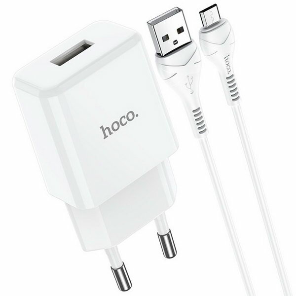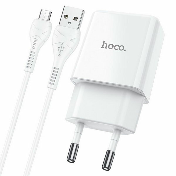 Сетевое зарядное устройство N9, USB - 2.1 А, кабель microUSB 1 м, белый информация: