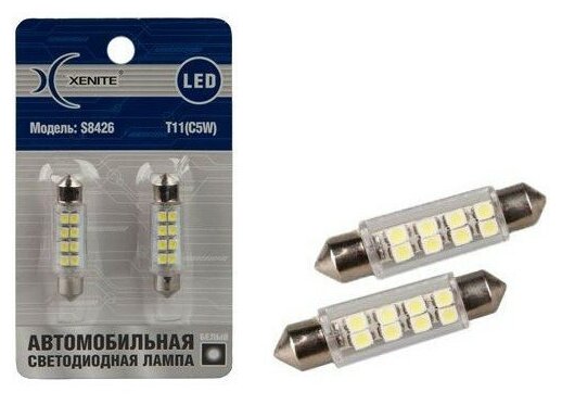 Лампа светодиод 12v sv8.5 т11х42 xenite s8426 8smd 160lm белая 2шт