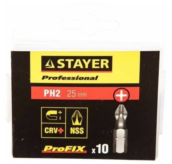 STAYER 26201-2-25-10_Z01 Набор бит 1/4" PH2 25мм 10 предмета в блистере STAYER информация: