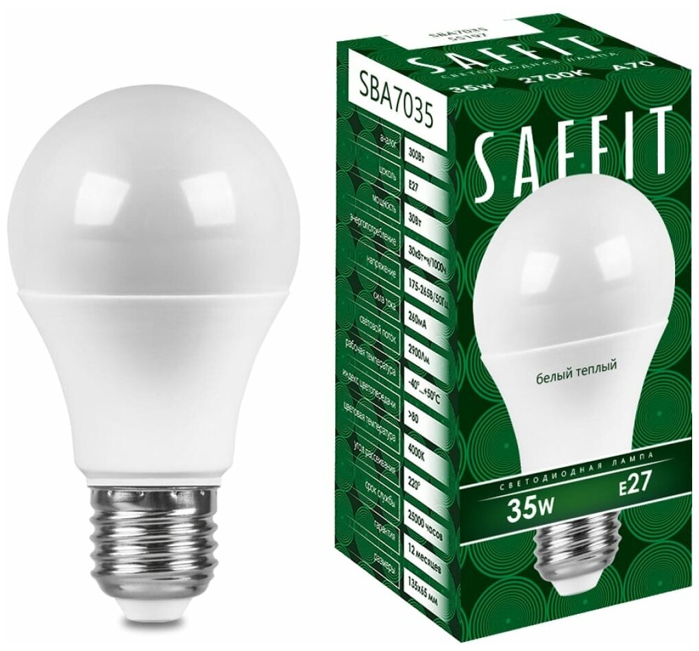 Saffit Лампа светодиодная SBA7035 Шар E27 35W 2700K 55197 . информация: