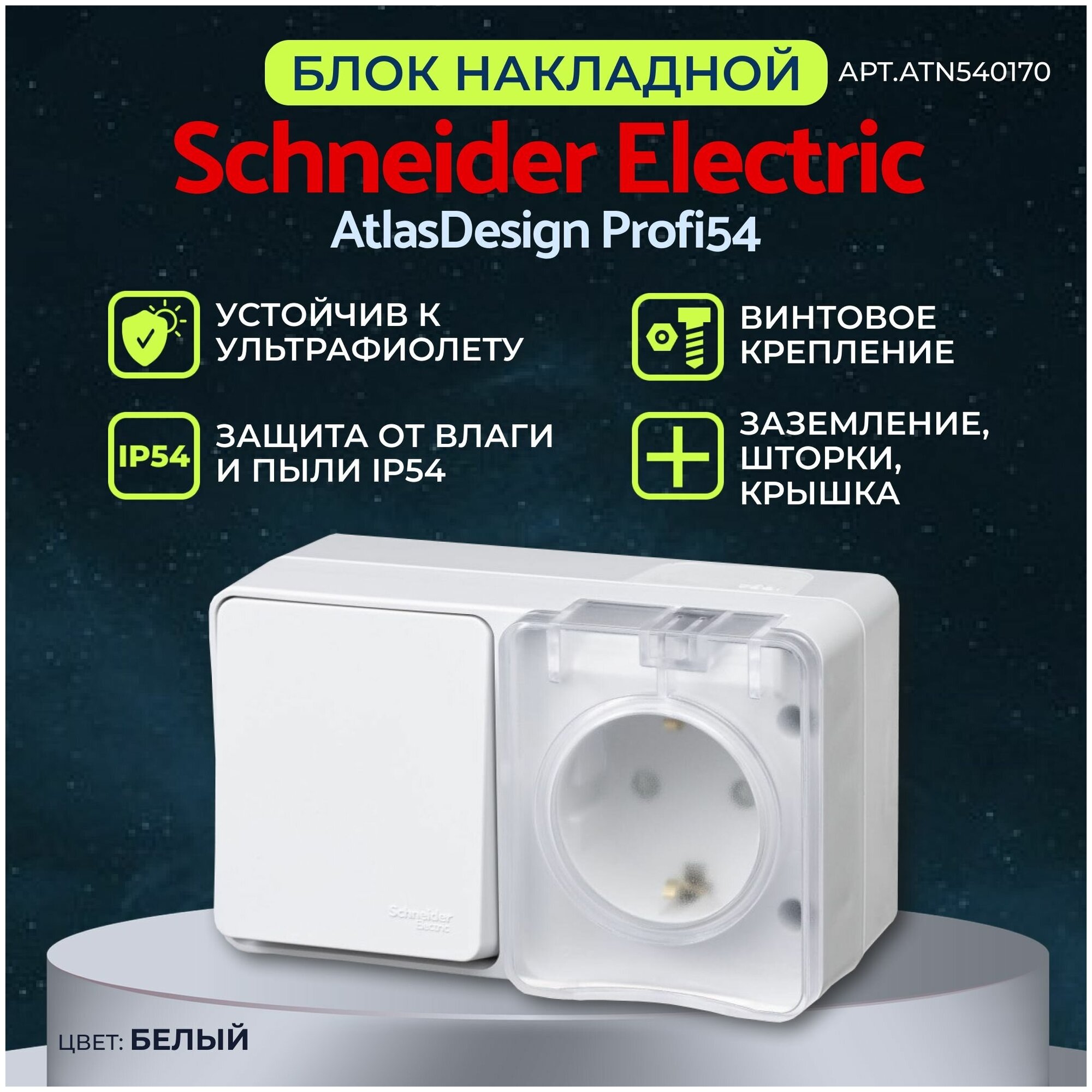 Блок розетка и выключатель SCHNEIDER ELECTRIC Atlas design Profi54 белый ATN540170