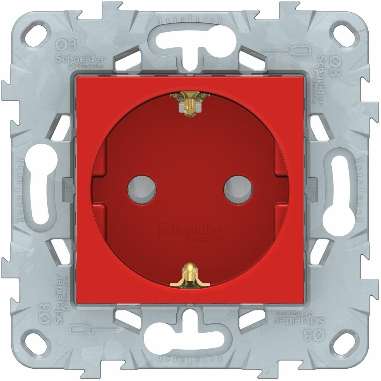 Розетка Schneider Electric Unica New с заземлением и защитными шторками, винтовые зажимы. Красная