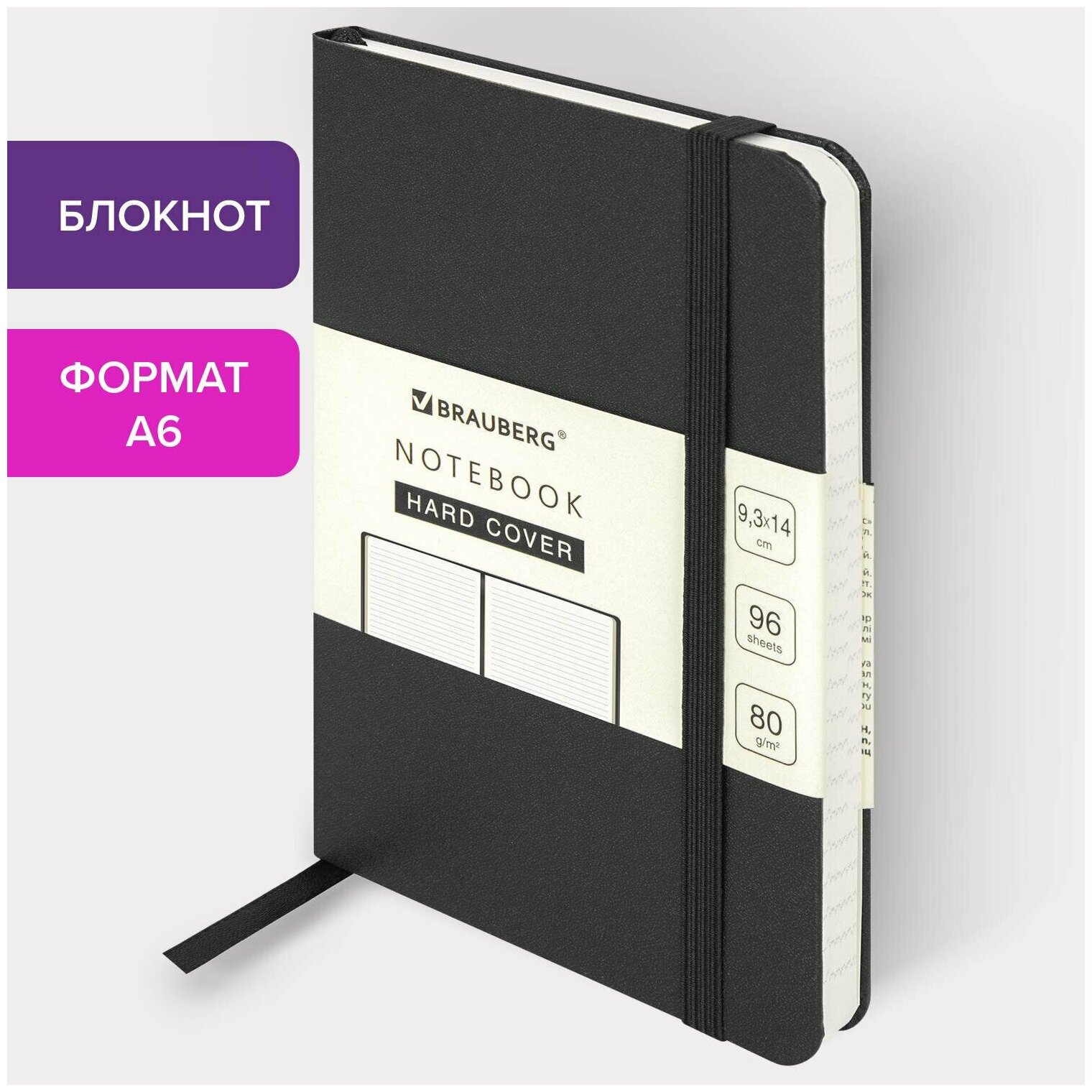 Блокнот малый формат (96х140 мм) А6, BRAUBERG ULTRA, балакрон, 80 г/м2, 96 л., линия, черный, 113056