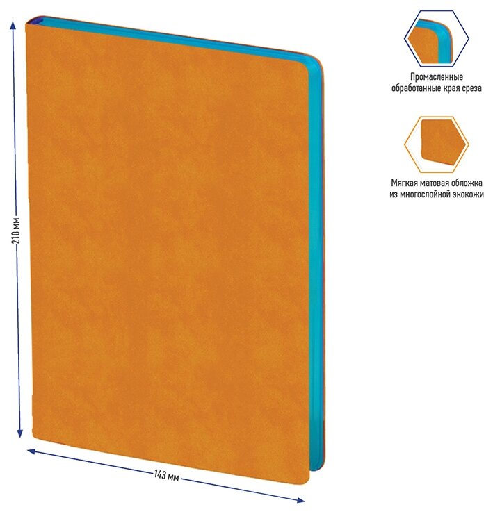 Комплект 2 шт, Записная книжка А5 80л, кожзам, Berlingo "Fuze", цветной срез, оранжевый 1 579 ₽