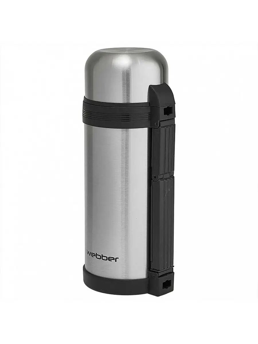 Термос Weber SST-1000P, 1000 мл, нержавеющая сталь, с кнопкой, ремень для переноски, стальной 1 232 ₽